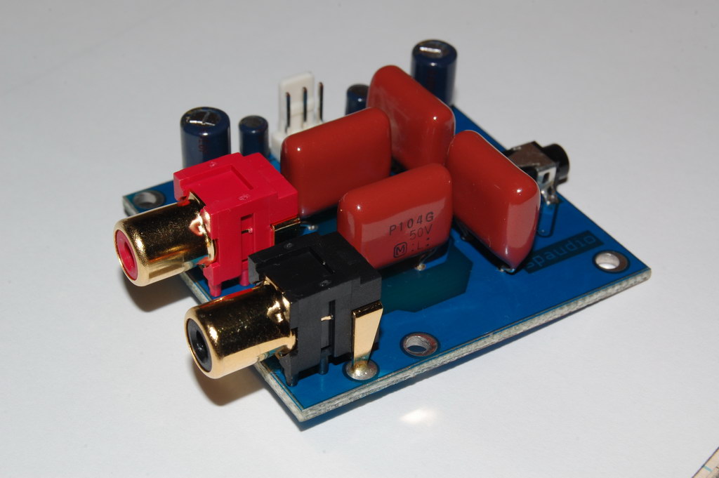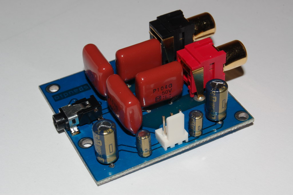 You can have a look at the finished amplifier on the photos below. The first three photos are of the components mentioned above, and the second three are of another version with polyester capacitors made again by Vishay and resistor in the feedback with 1% tolerance. That doesn’t mean low quality but lower price instead. Hearing the difference is very hard for inexperienced listener. On the third photo one can see general purpose 1% 0806 resistors in parallel to the input instead f the Vishay ones because the photo was taken while waiting for these to arrive.