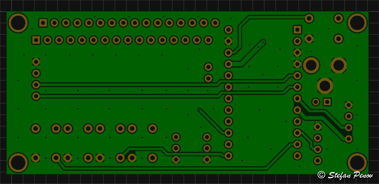 The PCB design was focused around the LCD, because I wanted to keep the front as small as possible. This is how it looks: